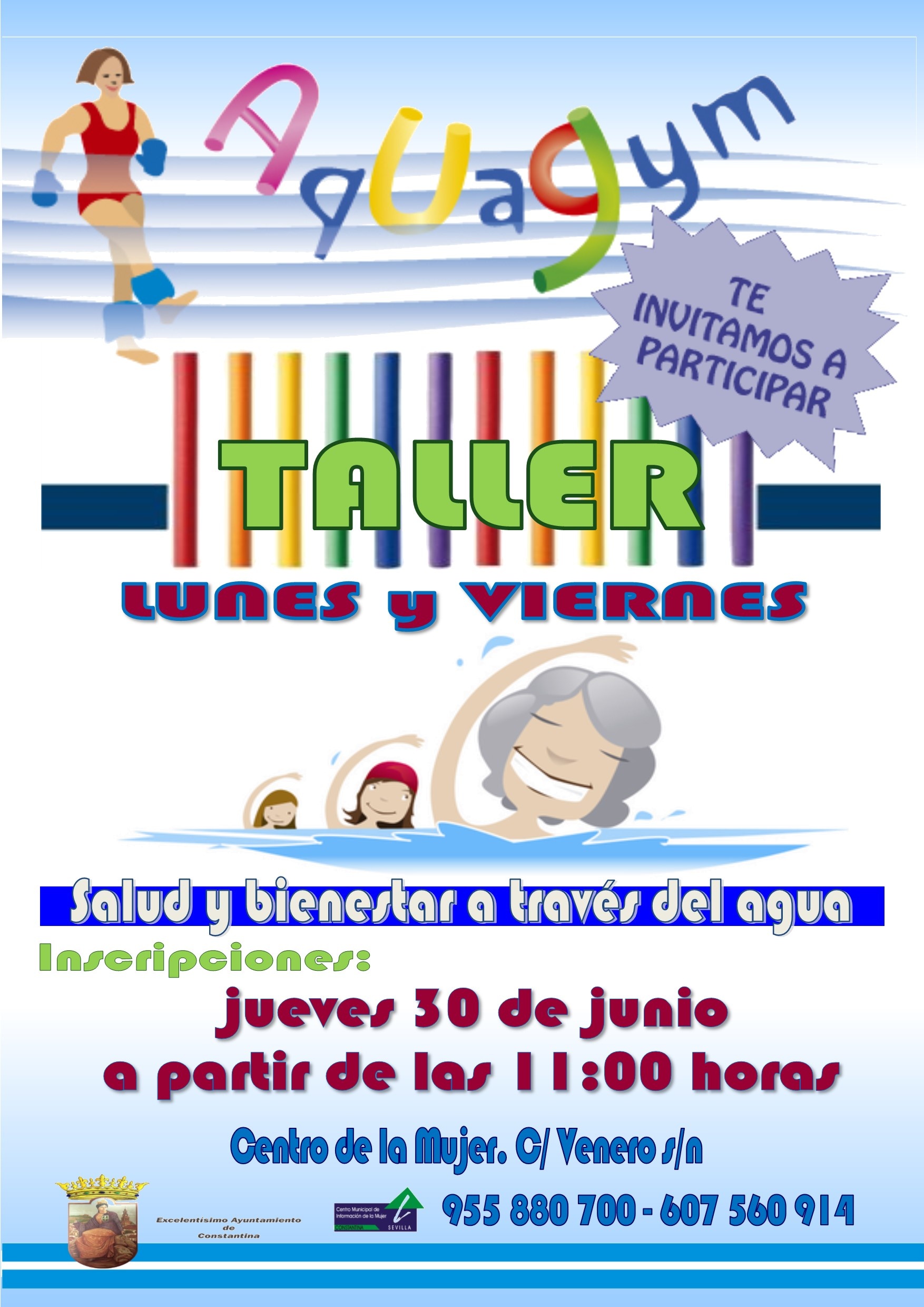El Centro Municipal de la Mujer del Área de Igualdad del Excelentísimo Ayuntamiento de Constantina te ofrece un Taller de Aquagym, cuya inscripción para los interesados se abre el próximo jueves 30 de junio, a partir de las 11:00 horas, en el mismo Centro Municipal de Información a la Mujer (calle Venero).