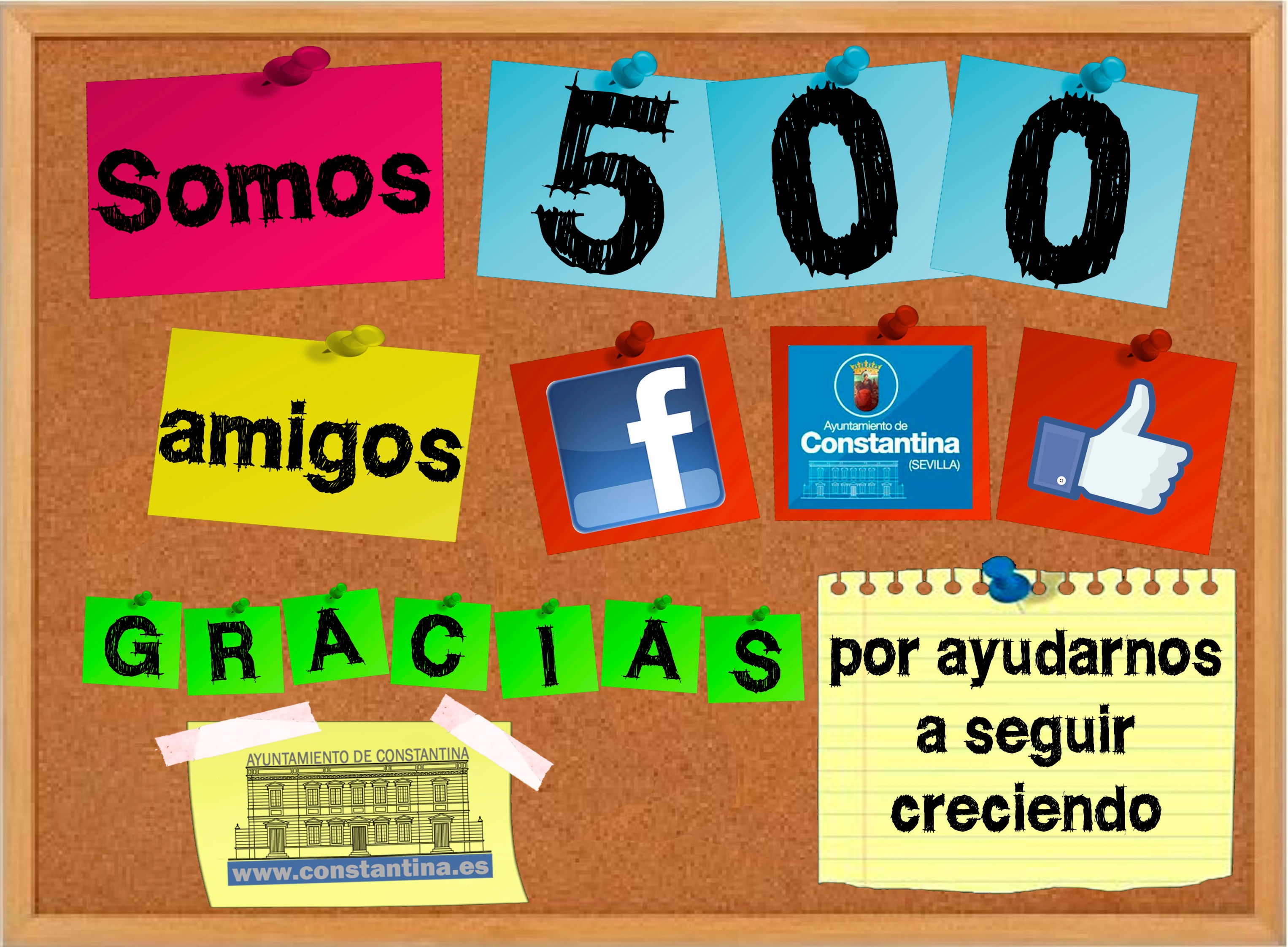 oy hemos alcanzado la cifra de 500 seguidores en nuestra página del Ayuntamiento de Constantina en Facebook. Vamos creciendo poco a poco, pero sin cesar de hacerlo desde julio de 2013 que nació el Facebook Ayuntamiento de Constantina.